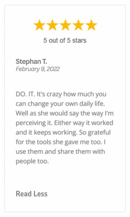 What You’ll Get Includes (but isn't limited to): - Tactical, brain-based tools to shift how your mind handles stress, fear, overthinking, and self-sabotage - "Aha" Moments that help you easily reset and shift direction - Clear language, hard truths, and deep respect - Shifts that feel like traction (not just insight and motivational memes) - Learn TONS of tools including things like Neuro-Linguistic Techniques, Clinical Hypnotherapy, Cognitive Behavioral Exercises and tons more - Practical take-home info specific to your individual situation - Recordings of the session or meditations, if decided upon in session What You Won’t Get: - Emotional babysitting - Forced positivity - Buzzwords without follow-through - Weekly pep talks that don’t change anything - BS cookie-cutter solutions or tools